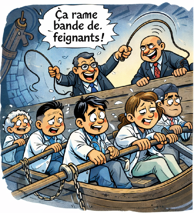 1) Depuis que nous manquons de médecins, les fonctionnaires ajoutent des administratifs pour s’occuper de la médecine. C’est stupide et cher. Pour soigner, il faut des médecins compétents.